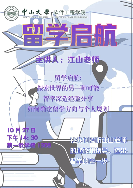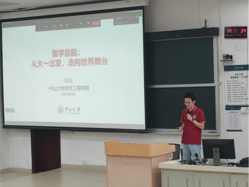 2025年10月27日下午,第七期活动以“留学启航:探索世界的另一种可能”为主题,在南校园第一教学楼1308开展,本次活动由学院副教授江山老师主讲。