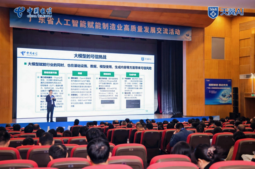 20251216日,广东省人工智能赋能制造业高质量发展交流活动在广州市越秀区电信广场7楼大礼堂举行。活动由中国电信股份有限公司广东分公司主办,广东省工业和信息厅指导,旨在贯彻落实省委、省政府关于人工智能发展的战略部署,积极响应《广东省人工智能赋能制造业高质量发展行动方案(2025-2027年)》政策导向,汇聚政产学研用各界力量,共同探讨人工智能赋能制造业的创新路径与实践成果,推动AI技术在制造业细分领域深度应用。