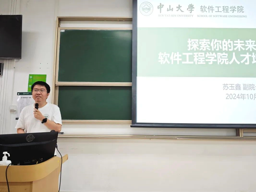 2024年10月18日,第二期活动以“专业解码:探索你的未来方向——软件工程学院人才培养体系介绍”为主题,在广州校区南校园逸夫楼408举行。本次活动由软件工程学院副院长苏玉鑫副教授主讲。