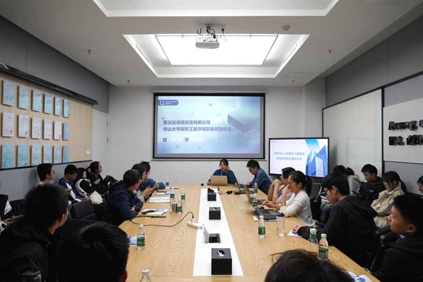 蓝书记与和元达科技就如何深度进行校企合作展开探讨,希望加强校企联系。同学们则就职业能力培养、如何平衡学习与工作等话题与公司多位负责人进行充分细致的交流。