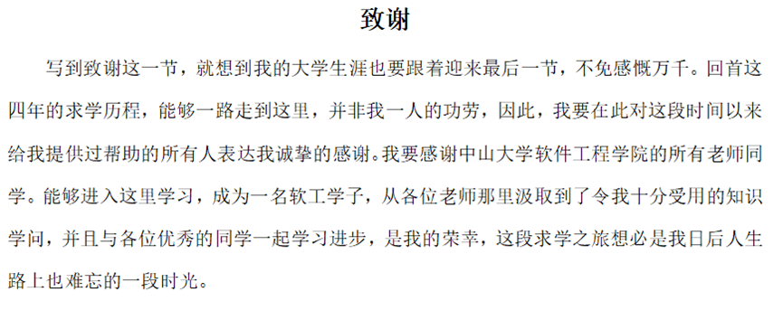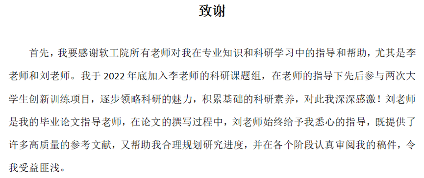 从初入中大的青涩懵懂,到在软件工程学院三年的积淀成长,我逐渐成长为懂得规划人生的行动者,我所收获的,也远超自己最初的想象。在软工的时光里,我不仅学到了扎实的专业知识,更幸运地遇到了温暖的导师、志同道合的朋友,也在科研的道路上迈出了坚实的一步。感谢所有在求学旅程中给予我指导与支持的老师、朋友,以及始终信任并鼓励我的家人。是你们的托举,让我有底气去追梦,也让我更加珍惜这段旅程。毕业不是终点,而是下一场远征的起点。愿我们都奔赴热爱的方向,前程似锦,再会有时。
