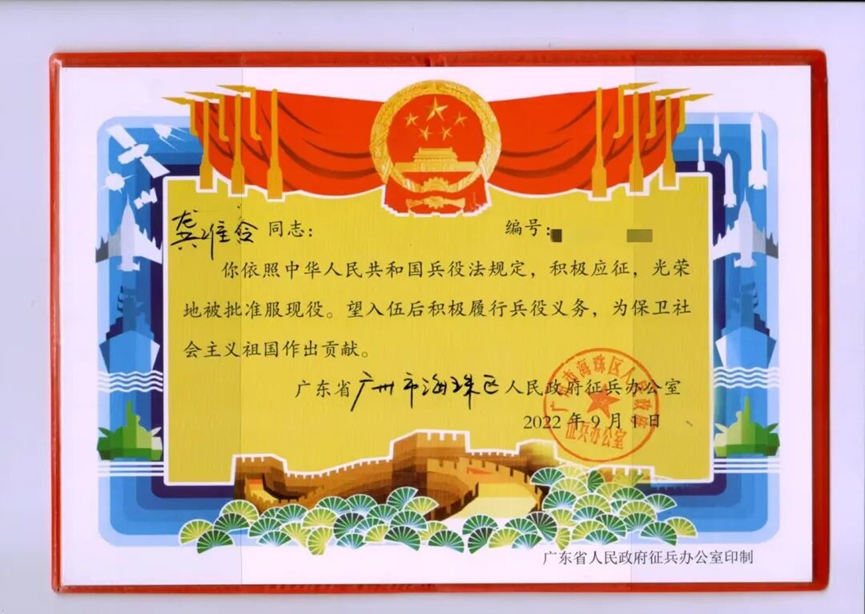 怀揣着对军旅生活的向往和锻炼自我的决心,软件工程学院本科生龚准令在刚结束大一学业时,毅然报名参军。我想让自己的人生多一种可能,让青春多一抹迷彩色。面对亲友的疑惑,他这样回答。经过层层选拔,在20229月,龚准令光荣地被批准服现役。他如愿穿上军装,告别美丽的康乐园,踏上开往西北的列车,前往武警甘肃总队机动支队,开始了他的军旅生涯。