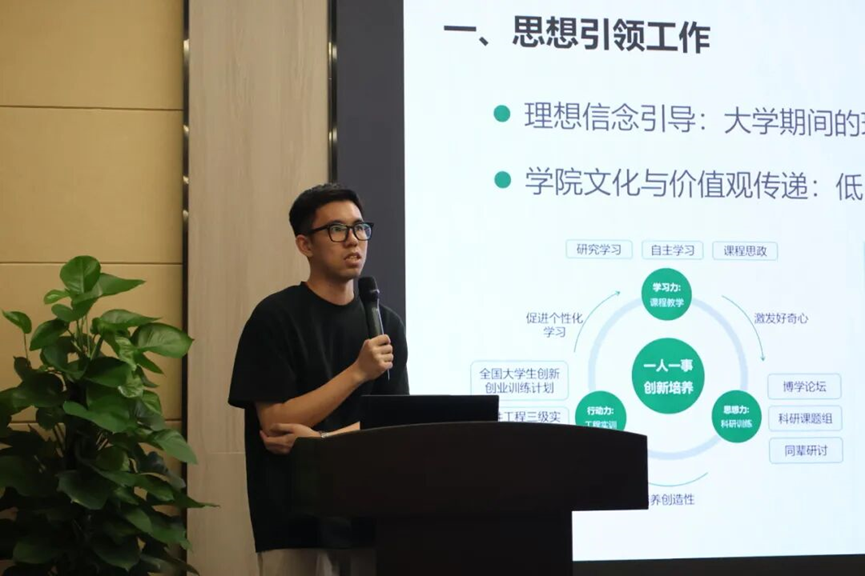 软件工程学院团委书记、党务秘书林柱良老师从思想、学业、生活三个维度展开讲解,指出朋辈领航员要发挥好学生骨干的带头引领作用。