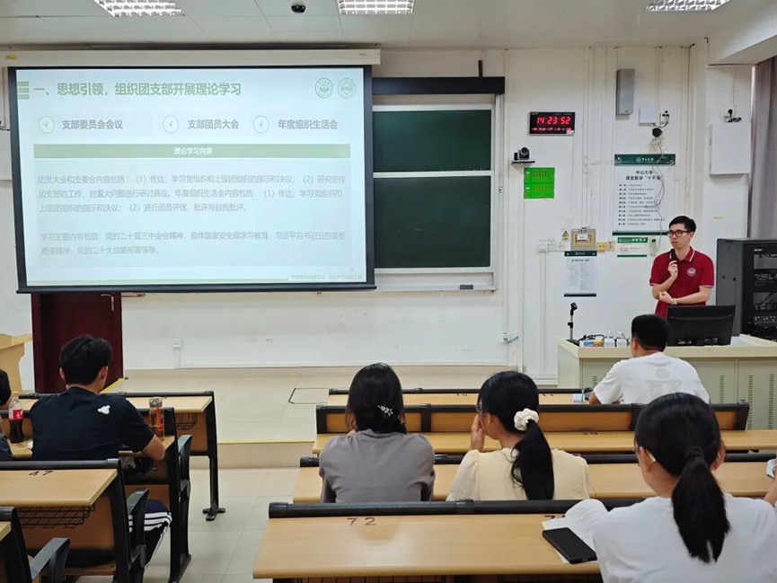 林老师围绕团支部建设工作展开讲解,重点为团支委们介绍了团支部建设的整体方向与规划。他希望大家在团支书的引领下,推进班级党务与团务建设,将更多优秀的入团及入党积极分子吸纳到学院团组织与党组织中。