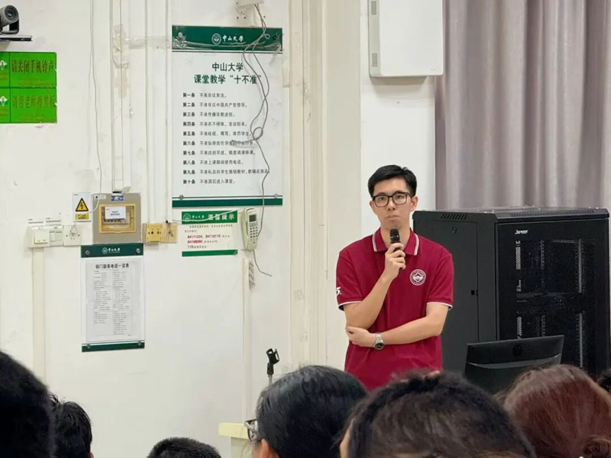 周玉婷老师给新生解读了《中山大学学生处分管理规定》《中山大学学生宿舍管理办法》等规范制度,她指出,严守校纪校规是大学生立身行事之本。同时提醒同学们注意网络信息安全风险,切实掌握反诈防骗知识,引导大家将规则意识内化为行为自觉,为新生顺利开启大学生活保驾护航。