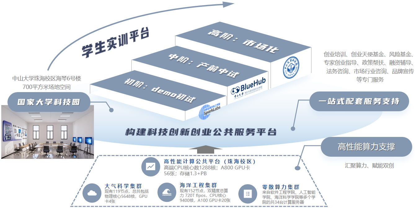2025年9月,为积极响应国家创新驱动发展战略和人才强国战略号召,推动粤港澳大湾区加快建设国际科技创新中心,培养具备卓越学习力、思想力和行动力,具备创新创业精神、创业实践能力的跨学科AI创新创业人才,中山大学软件工程学院依托可信大模型、智能软件等国际前沿AI科技创新领域的学术和应用积累,启动科技创新创业枢纽(Blue Hub,简称“蓝色枢纽”)建设,旨在构建师生共创的卓越科技创新创业项目培育链路。