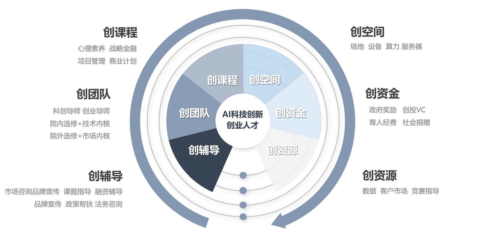 在产品市场化方面,依托学校人工智能研究院的高算力设施,以及国家大学科技园的孵化设施空间,着力为Blue Hub科创团队打造创业实训综合体。通过创业导师资源提供创业培训、专家创业指导、政策帮扶、融资辅导、市场行业咨询、品牌宣传等一站式配套服务支持,让技术成果向市场产品转化,培养科创型企业家。