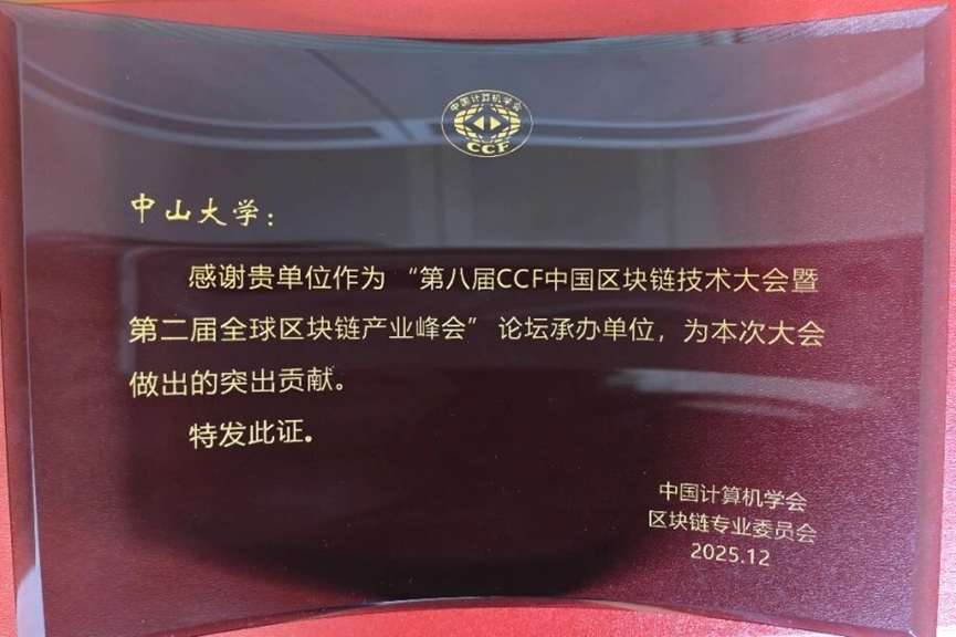 我校作为承办单位获中国计算机学会区块链专业委员会表彰